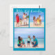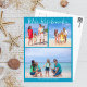 Chic blau individualisierbare Beach Family Foto Collage Weihnachts-Postkarte mit Ihren Lieblings-tropischen Fotos in der Sonne. Fügen Sie 3 Ihrer Lieblings-Erinnerungen aus Ihrem Inselurlaub an die Küste. Schöne Postkarten an der Küste mit einer sauberen, modernen Fotografie-Layout und hübschem blauen Schrift.