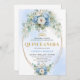 Chic Blue Peony Gold Script Quinceañera Invite Einladung