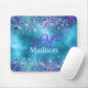 Chic Blue Pink Iridescent Glitzer Monogramm Mousepad