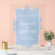 Mit diesem schicken blauen Splash-klaren Acryl-Willkommensschild mit Ihren Details in schicken Schriftzeichen geben Sie Ihrem besonderen Tag eine stilvolle Note. Das glänzende Acrylmaterial ist perfekt, um Ihrem Anlass Luxus zu verleihen.