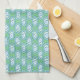 Ein sehr hübsches Teetuch oder Küchentuch, mit Motiven der blauen Periwinkle Blume auf Weiß, in einem dekorativen Hexagon, alles auf einem grünen Hintergrund. Teil der Posh und Painterly 'Periwinkle Patch' Kollektion.