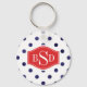 Chic blue-white polka dots muster monogramm schlüsselanhänger