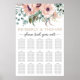 Chic Blush Blues Hochzeitsdiagramm. Das Design besticht durch einen Strauß von Aquarellfarben-rosa Blume. Sehen Sie sich den Sammellink auf dieser Seite an, um alle passenden Elemente in diesem schönen Design zu sehen.