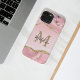 Das Design ist mit einem rosafarbenen Edelstein aus schwarzem Rosa deode mit geschliffenem goldenen Glitzer ausgestattet. Klassisches Goldmonogramm mit eleganter Schriftzypografie.