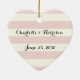 Chic blush pink und Elfenbeinstreifen benutzerdefinierte Skripte Namen Hochzeit oder Weihnachts-Keramik Ornament