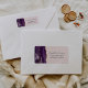 Die links Kulisse dieses eleganten, modernen Hochzeitseinladungs-Rücksendelabel besticht durch eine lila Aquarellgrenze mit vergoldetem Imitat-Glitzer. Der individuell anpassbare Text kombiniert handgeschriebene Holzkohle und kopperplate-Schriftart auf einem hellrot-rosa Hintergrund.