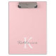 Chic Blush Pink Script Monogram Personalisiert Klemmbrett