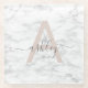 Chic Blush Pink White Marble Script Name Monogram Glasuntersetzer