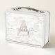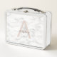 Chic Blush Pink White Marble Script Name Monogram Metall Brotdose
