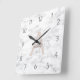 Chic Blush Pink White Marble Script Name Monogram Quadratische Wanduhr