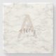Chic Blush Pink White Marble Script Name Monogram Steinuntersetzer
