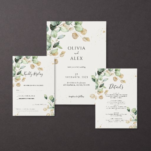 Chic & Boho Eukalyptus mit Gold Details Hochzeit Begleitkarte