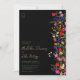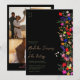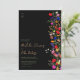 Fügen Sie eine Touch von böhmischer Eleganz zu Ihrer Hochzeit mit diesem modernen Chic Boho Bright Elegant farbenfrohe wilde Blume 3 Fotos Hochzeit Einladung. Die botanischen Blume in Rosa, Rot, Grün und lila Farbtönen, inspiriert von Wildblumen und rustikalen Aquarellen-Gärten mit subtiler Vegetation und moderner boho-Schrift-Typografie auf dunklem Hintergrund. Mit eleganter, moderner Schrift-Typografie, perfekt für kausale, Gartenhochzeiten im Freien.