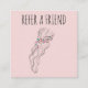 Dieses Design ist ein ausgeklügelter Ausdruck des bohenhaften Charmes, zugeschnitten auf professionelle Haarstyler, gewelltes Haar gekrönt mit einem lebendigen boho blumigen Kopfstück, das für die Kunst eines Haarstylisten im Brautlook auf einem rot rosa Hintergrund steht. Der Text von Refer A Frien verankert das Design in einem sauberen, modernen Schriftart und vermittelt maßgeschneiderten Service. Dieses elegante und zeitgenössische Branding eignet sich hervorragend für Fachleute der Schönheitsbranche - wie Makeup-Künstler, Schönheitssalon-Besitzer, Hochzeitshaaristen, Kosmetologen und Schönheitseinflüsse -, die eine Touch von Launen und personalisiertem Flair in ihr Geschäftsbild einfließen lassen möchten.