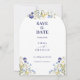 Chic boho einfache Wildblumen Wedding Save the Date mit blauer Kalligrafie