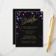 Funkelnd Konfetti-Lichter glänzen in durchsichtigem Rosa, lila und blau im Hintergrund dieser fabelhaften und glamourösen Hochzeitszähnenkarte, mit einem Imitat goldenes Blatt extravagantes Drehbuch, das "Details" in chic-gekrönter Kalligrafie schreibt. Bitte beachten Sie, dass dies KEIN echtes Goldblatt oder Glitzer ist - es ist ein IMITAT Goldeffekt! Kunstwerk von Colleen Michele.