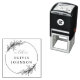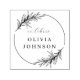 Chic Botanical Blätter Skript Ex Libris Individuelle Name Selbstfarbige Briefmarke. Mit handgezeichnet Blätter, die auf einem dünnen, runden Rand platziert sind, erscheint "ex libris" in elegantem Drehbuch und Ihr individuelle Name in einer klaren Serife.