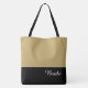 Diese hübsche Tasche aus der Mode nach vorne zeigt das Wort "Braut" in weißer Textfarbe über schwarz mit dem oberen Taschentuch in individuellem Matte Gold. Hat viel Platz für personalisierte Texte. Grafik und Text sind auf beiden Seiten dieses Totschlages. Schwarzer Griff. Passen Sie weiter an oder kaufen Sie wie gezeigt.