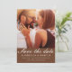 Chic braun und weiß ein Foto Hochzeit speichern Sie das Datum Ankündigung. Bitte schauen Sie sich diese elegante Hochzeitskollektion an, um schöne, koordinierende Hochzeitseinladungen und weitere moderne Farboptionen zu erhalten.