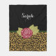 Eine schicke, goldbraune Leopardendecke aus Leopardenvlies mit eleganter rote Rose. Machen Sie diesen stilvollen Tierdruck und das rote Blumendesign besonders, indem Sie den Namen Ihres Lieblingsmädchens hinzufügen.