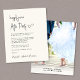 Haushaltsfreundliche helle Creme-Einführung oder private Hochzeitsankündigung und Hochzeitsempfehlung mit "Happily Ever After Party" in einem schicken, modernen Drehbuch, Ihre Heiratsankündigung und Einladung in klassischer Serifentypografie und Ihre Namen in einem signaturähnlichen Drehbuch. Auf der Rückseite finden Sie Foto, Namen, Hochzeitsdaten und Empfang.
