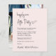 Die preisgünstige hellrosa Hochzeitsempfehlung mit "Happily Ever After Party" in einem schicken, modernen Drehbuch, Ihrer Heiratsankündigung und Einladung in klassischer Serifentypografie und Ihren Namen in einem signaturähnlichen Drehbuch. Auf der Rückseite finden Sie Foto, Namen, Hochzeitsdaten und Empfang.