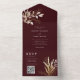 Chic Burgundy Gold Greenery QR Code RSVP Wedding All In One Einladung