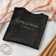 Eleganter und schicker schwarzer T - Shirt für Ihr Unternehmen mit minimalistischem Ambiente mit Firmenname oder Marke in einem stilvollen, weißen Signaturenskript. Fügen Sie unten einen zusätzlichen Text in einfacher, moderner weißer Schrift hinzu.