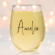 Chic personalisiertes, stemloses Weinglas, das Ihren Namen mit Monogramm in einem stilvollen Kalligraphieskript zeigt. Erleben Sie Ihren Wein-Drink oder überraschen Sie Ihre Mutter, Schwester, Freunde und andere Lieben mit einem nachdenklichen und eleganten Geschenk. Falls erforderlich, bearbeiten Sie das Entwurfstool, um die Skriptgröße für längere oder kürzere Namen zu erhöhen oder zu verringern.