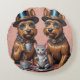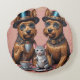 Diese faszinierende Abbildung zeigt zwei bezaubernde Yorkshire Terrier, die jeweils mit glänzenden, blauen, eleganten Hochhüten geschmückt sind. Sie befinden sich in einem eleganten, pfirsichfarbenen Raum, der von herrlicher Rokoko-Wandkunst geschmückt ist. Die Hunde mit ihrem seidigen, strahlenden Fell, das in exquisiten Details dargestellt ist, schlucken spielerisch von verzierten klassischen Teebedeckten Teebedeckten Teebedeckungen und verleihen eine Aura von raffinierter Eleganz und fröhlicher Eleganz und fröhlicher Freundschaft. In der Mitte der Szene, eine winzige Maus graziös ausgeglichen auf einer delikaten Platte verkörpert das Wesen der Freundschaft in diesem reizvollen Tableau.
