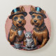 Diese faszinierende Abbildung zeigt zwei bezaubernde Yorkshire Terrier, die jeweils mit glänzenden, blauen, eleganten Hochhüten geschmückt sind. Sie befinden sich in einem eleganten, pfirsichfarbenen Raum, der von herrlicher Rokoko-Wandkunst geschmückt ist. Die Hunde mit ihrem seidigen, strahlenden Fell, das in exquisiten Details dargestellt ist, schlucken spielerisch von verzierten klassischen Teebedeckten Teebedeckten Teebedeckungen und verleihen eine Aura von raffinierter Eleganz und fröhlicher Eleganz und fröhlicher Freundschaft. In der Mitte der Szene, eine winzige Maus graziös ausgeglichen auf einer delikaten Platte verkörpert das Wesen der Freundschaft in diesem reizvollen Tableau.