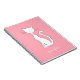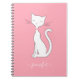 Ein lustiges und mädchenhaftes rosa Notizbuch mit einer niedlichen, schicken weißen Katze mit rosa Nase und Kragen seitlich sitzen, lächeln und drehen, um Sie mit ihren Whiskers und Schwanz in der Silhouette zu sehen. Sie können Ihren Namen unten in einem modernen, weißen Skript personalisieren.