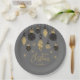 Schwarze und goldene Weihnachtsbaumschmuck und Schneeflocken auf grauem Hintergrund unterstreichen diese Feiertagszeitung Teller mit Ihrem Namen und Fröhliche Weihnachten in schicker Schrift. Ideal für Ihre privaten oder geschäftlichen Feierlichkeiten. In 2 Größen erhältlich. PASSENDE Artikel in unserer Sammlung.