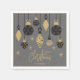 Schwarze und goldene Weihnachtsbaumschmuck und Schneeflocken auf grauem Hintergrund unterstreichen diese Feiertagsernäppchen mit Ihrem Namen und frohe Weihnachten in schicker Schrift. Ideal für Ihre privaten oder geschäftlichen Feierlichkeiten.
