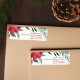 Frohe Weihnachten in eleganter roter, kursiver Schrift umgeben von schönen grünen Kiefernnadeln und festlich roten Poinsettia Blume. Diese wunderschöne Blumengrenze ist eine schicke Touch zu Ihrem Corporate Ferien Rücksendelabel. Passen Sie mit Ihrem Firmennamen oder Ihrem Firmennamen neben dem Winter botanischen Design an.