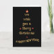 Eine schicke Weihnachtskarte mit "Wir wünschen Ihnen ein frohes Weihnachtsfest" in goldener Schrift auf schwarzem Hintergrund, in Form eines Weihnachtsbaumes. Helle rote Sterne und "ein glückliches neues Jahr", auch in Goldeffektschrift, runden dieses moderne, textbasierte, digitale Design von Judy Adamson ab.