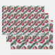 Christmas tree ornaments and pine branches are featured on these wrapping paper sheets, stylish for any Christmas holiday gift-giving occasion.