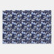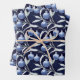 Christmas blue tree ornaments and leaves are featured on these wrapping paper sheets, stylish for any Christmas holiday gift-giving occasion.