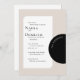 Ein einfacher Kreis mit gekrümmtem Text überschneidet die Details der Hochzeit.