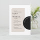 Ein einfacher Kreis mit gekrümmtem Text überschneidet die Details der Hochzeit.