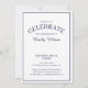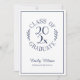 Versenden Sie elegante Einladungen für das Jubiläum Ihres Absolventen mit einem schicken marineblau auf weißem Typografie-Emblem, das lautet: KLASSE OF [YEAR] GRADUATE mit den Worten, die rund um das Jahr in der Mitte kurvieren, mit gebogenen botanischen Blätter entlang jeder Seite des kreisförmigen Designs. Unter dem Emblem befindet sich der Name des Absolventen in einem dunkelblauen Skript-Schriftart und seine Schule in einem schlanken Serif-Schriftart. Ein feines Rechteck aus der Marine erzeugt einen Rand in der Nähe des Kanals. Auf der Rückseite finden Sie Details zur Graduierungsparty. Ersetzen Sie den Beispieltext auf der Einladung für Ihren Absolvent und Ihre Veranstaltung. Personalisieren Sie es für jeden Absolventen: High School, Uni, Graduiertenschule, Jura, Medizin oder Fachschule. Copyright ©Claire E. Skinner. Alle Rechte vorbehalten.