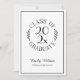 Versenden Sie elegante Einladungen für das Jubiläumsfest Ihres Absolventen mit einem schicken schwarz auf weißem Typografie-Emblem, das lautet: KLASSE OF [YEAR] GRADUATE mit den rund um das Jahr kurvierenden Wörtern in der Mitte mit gebogenen botanischen Blätter entlang jeder Seite des kreisförmigen Designs. Unter dem Emblem befindet sich der Name des Absolventen in einem Schriftart mit schwarzer Schrift und seine Schule in einem schlanken Serif-Schriftart. Ein feines schwarzes Rechteck erstellt einen Rahmen in der Nähe des Randes. Auf der Rückseite finden Sie Details zur Graduierungsparty. Ersetzen Sie den Beispieltext auf der Einladung für Ihren Absolvent und Ihre Veranstaltung. Personalisieren Sie es für jeden Absolventen: High School, Uni, Graduiertenschule, Jura, Medizin oder Fachschule. Copyright ©Claire E. Skinner. Alle Rechte vorbehalten.