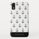 Chic Küstenschwarz-weiß Ankermuster, personalisiert mit Namen, iPhone Gehäuse.