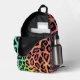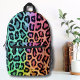 Spaß und lebhaftes Leopardenblatt wie eine bestimmte Marke, die wir alle in den 90er Jahren lieben und die sich wieder in der Beliebtheit erfreut! Das Foto zeigt die Textur, die es so aussehen lässt, als sei es weiches Fell oder Stoff. Farbe hat viele Schattierungen des Regenbogens gegen ein schwarzes Leoparden oder Geparden-Muster. Glam Trendy farbenfroher Regenbogen Leopard Animal Print Rucksack. Ideal für den Rücken in die Schule für Ihre Kinder oder für einen Lehrer oder ein Urlaubsgeschenk.