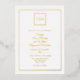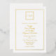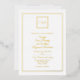 Stilvolle Hochzeitseinladung in Weiß, mit echten Folienakzenten und Text. Die Monogramme von Braut und Bräutigam zieren ein Quadrat, oben auf der Einladung, und ein dünner Doppelrahmen umgibt die Vorderseite. Die Rückseite der Einladung ist in Weiß gemacht. Personalisieren Sie alle Textfelder für Ihren besonderen Tag. Die passenden Hochzeitsprodukte stehen zur Verfügung.