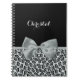 Ein elegantes Korallen- und schwarzes Jaguar-bedrucktes Notizbuch mit einem gürlich hellroten Band, das an einem niedlichen Bogen befestigt ist. Personalisieren Sie diese modische Leopardin wie Tierdruckmode Accessoire, indem Sie den Namen Ihres Teenagers hinzufügen. Flachdruckbild, nicht eigentlicher Bogen.
