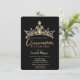 Elegante Krone und Diamanten auf schwarzem Hintergrund.