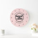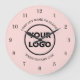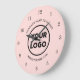Chic Custom Business Logo und Text auf Rosa Große Wanduhr