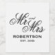 Chic Custom Weinflaschen Etiketten für Hochzeitsfeier. Machen Sie Ihre eigene elegante Tischdekoration für glamouröse Hochzeitsfeier, extravagante Verlobung, Jubiläum, Brautparty, Empfang, Probe Dinner etc. Stilvolle Typografie-Vorlage mit Skripttext. Fügen Sie Ihren eigenen personalisierten Nachnamen und das Heiratsdatum hinzu. Einfache Schwarz-Weiß-Farben. Auch schön wie Gastgeschenk.