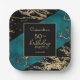Chic Cyan Marble Gold Foil Paint Texture Geburtsta Pappteller